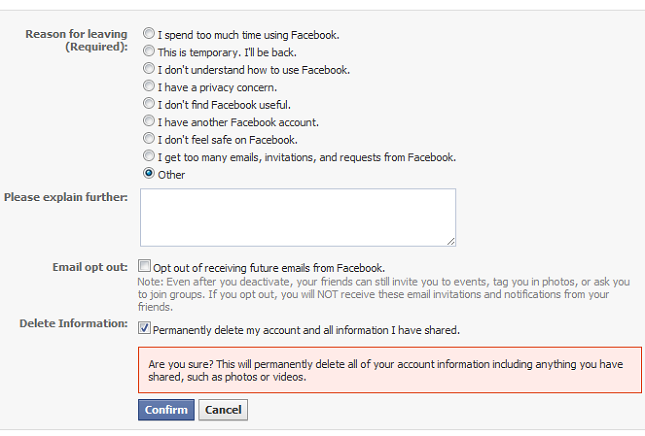 Facebook sperimenta eliminazione veloce dell’accaunt.